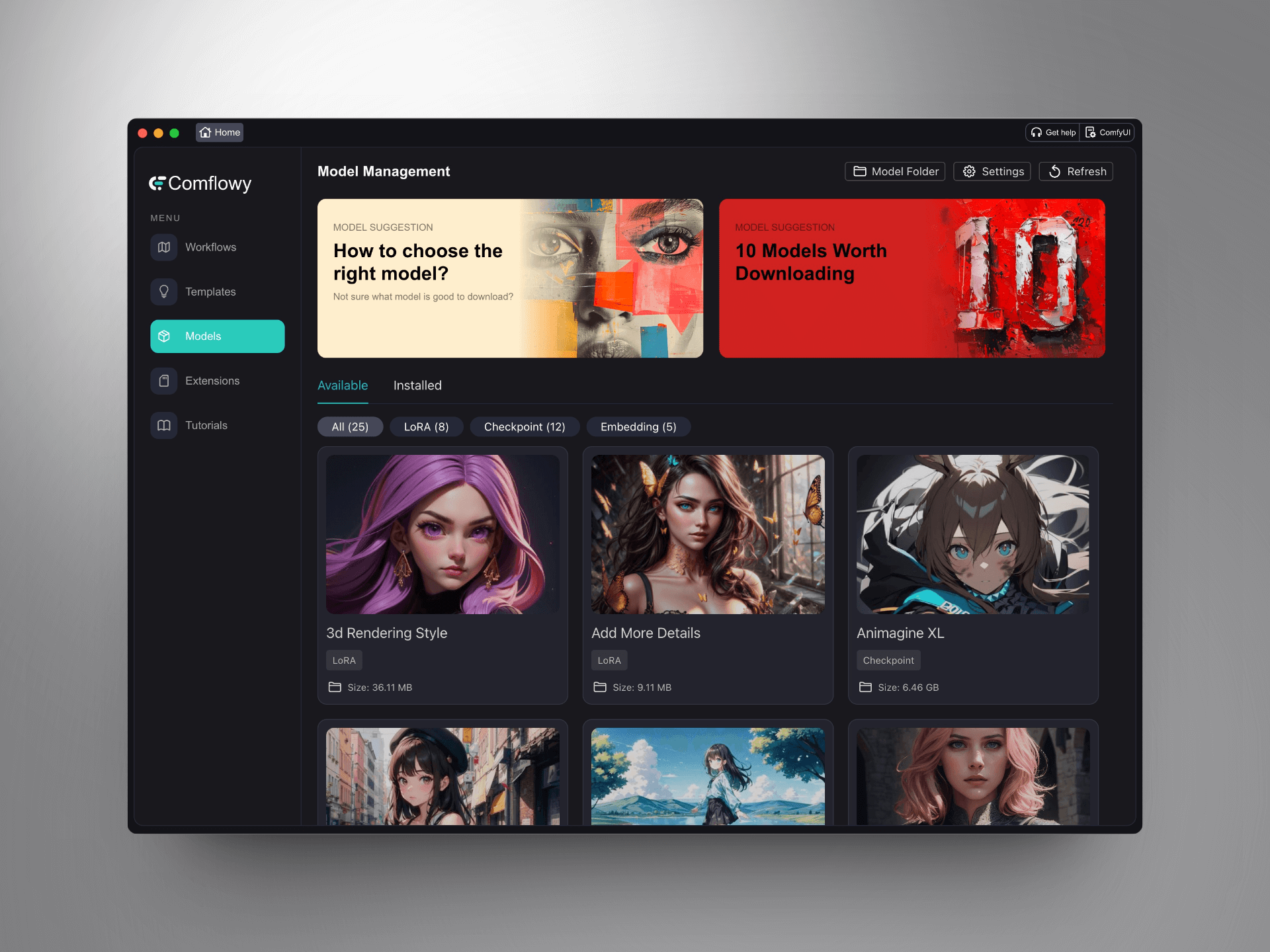 - The Model Tab has been updated with a model recommendation feature. You can see the models we believe are worth downloading from here.